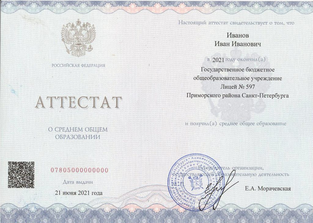 Аттестат за 11 класс 2021-2026 года с QR кодом
