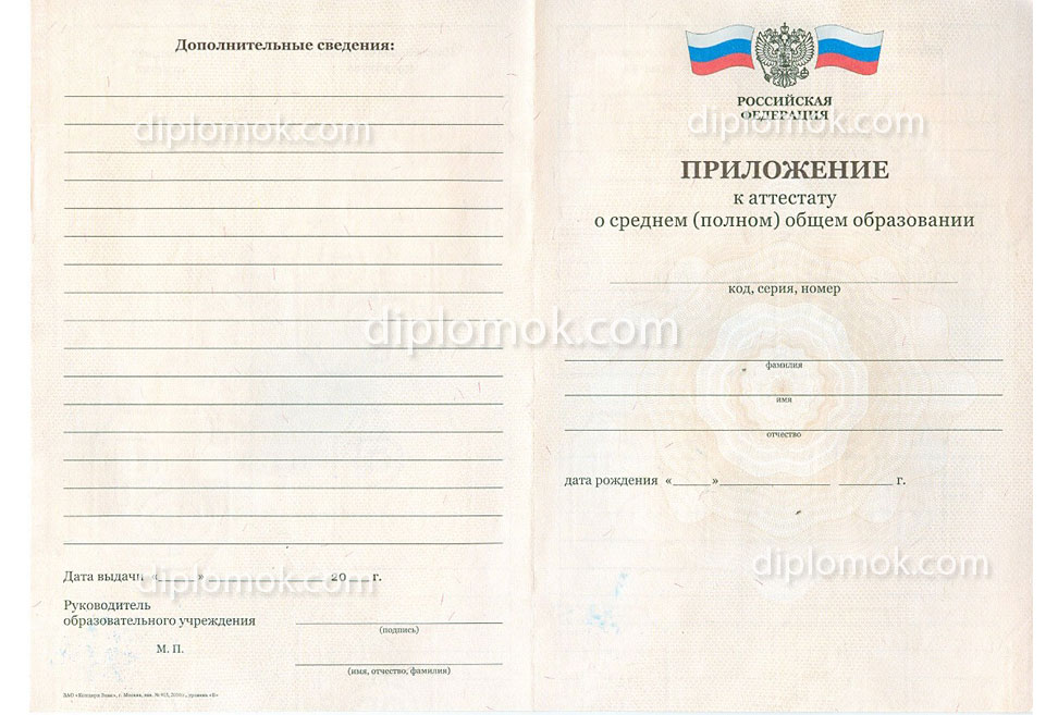 Купить приложение (вкладыш) к аттестату на Гознаке